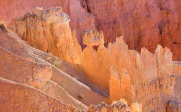 Rosy-hued slot canyons turn orange and draw long shadows as sunshine intrudes then retreats. Suggest edits to improve what we show. The Queens Garden Trail in Bryce Canyon is a beautiful walk through the main amphitheater at Bryce Canyon.